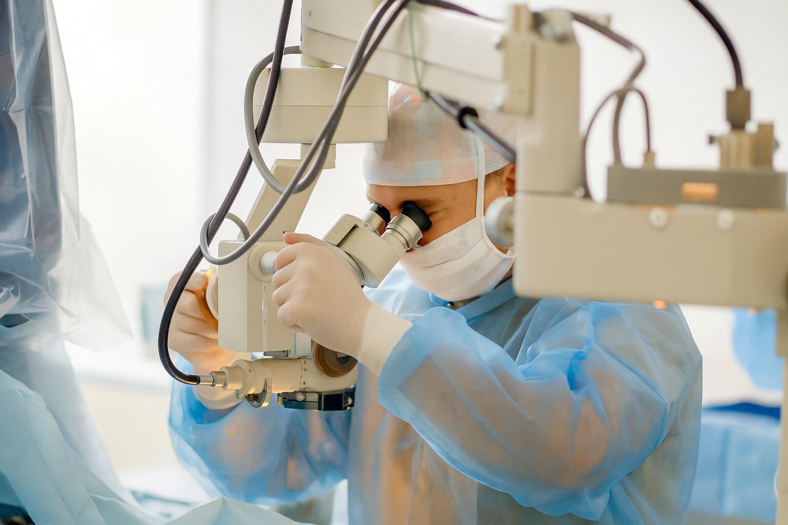 - Анестезия. Хирургическое вмешательство проводится под местной анестезией. Пациенту закапывают специальные капли с анестетиком, которые полностью блокируют болевые ощущения. В некоторых случаях выполняется дополнительная инъекция обезболивающего препарата в область вокруг глаза. Человек находится в сознании, может слышать инструкции врача, но не испытывает боли.
